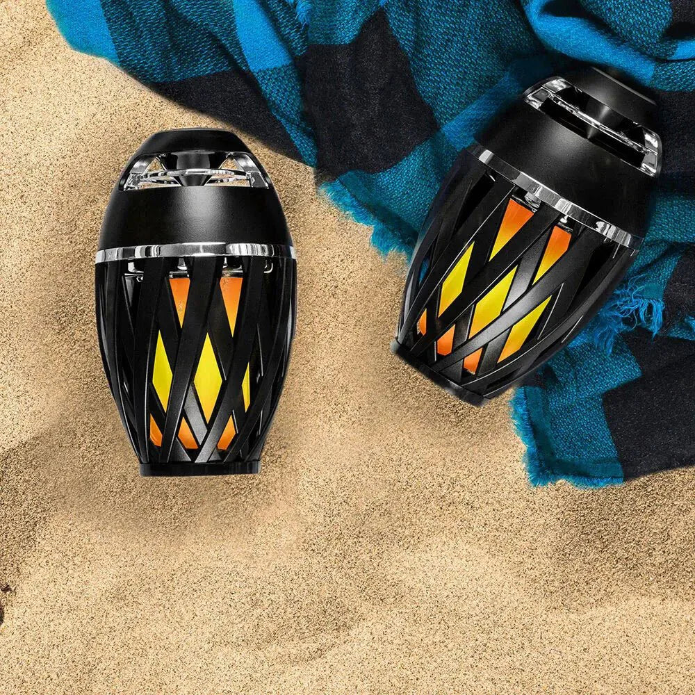 Speaker provides up to 9 hours of continuous audio playtime and features a tiki-inspired LED flickering flame. With an IP65 rating, it's perfect for both indoor and outdoor use. Enjoy true stereo sound by connecting two speakers together for a dynamic audio experience!